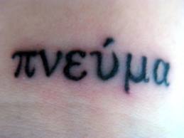 Pneuma, the Greek word meaning breath (spirit, wind). The Holy Spirit, the exhalation of Yahweh.